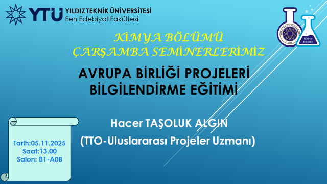 Çarşamba Seminer Günleri kapsamında seminerlerimize 15 Ekim Çarşamba günü saat 13.00'da, Dr. Öğr. Üyesi Buse Tuğba ZAMAN ile devam ediyoruz.