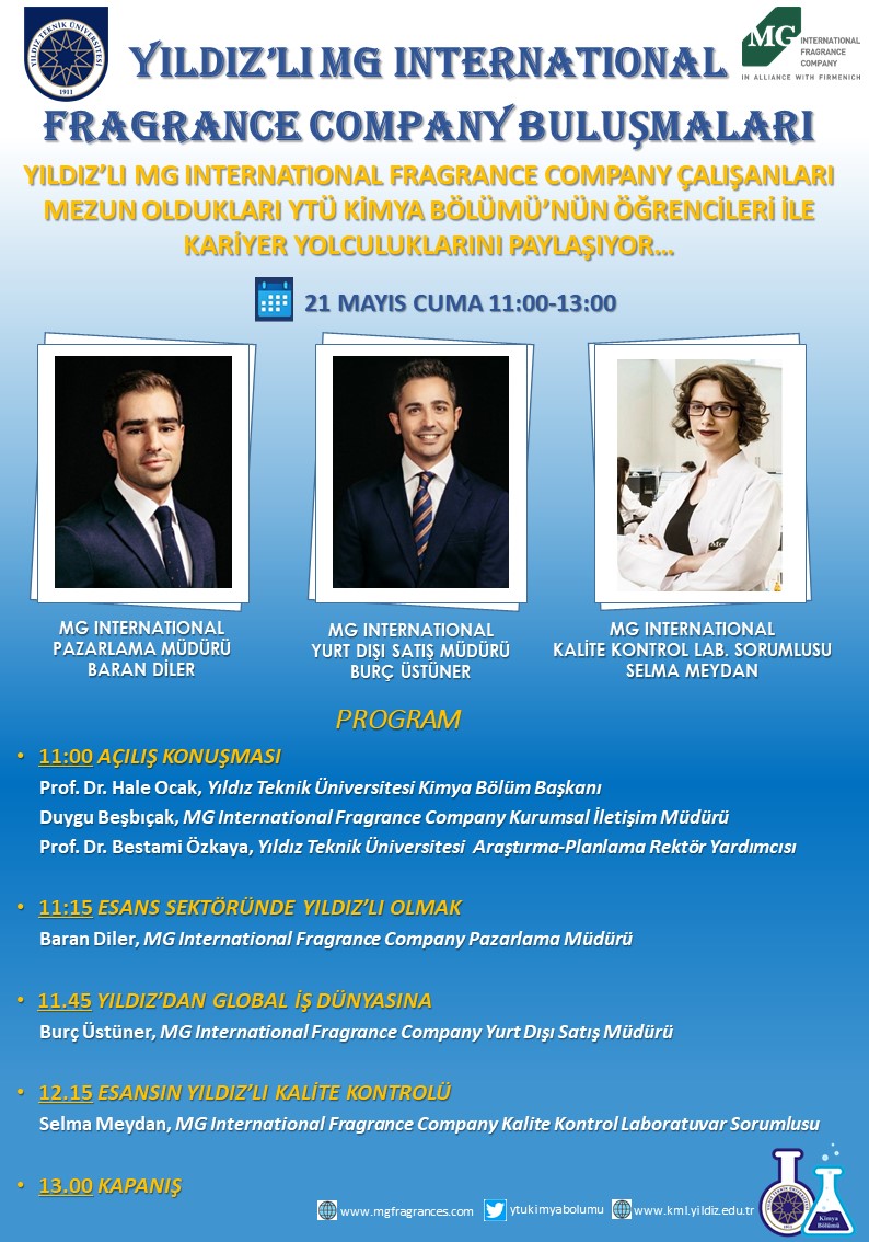 YILDIZ’LI MG INTERNATIONAL FRAGRANCE COMPANY ÇALIŞANLARI MEZUN OLDUKLARI YTÜ KİMYA BÖLÜMÜ’NÜN ÖĞRENCİLERİ İLE KARİYER YOLCULUKLARINI PAYLAŞIYOR…