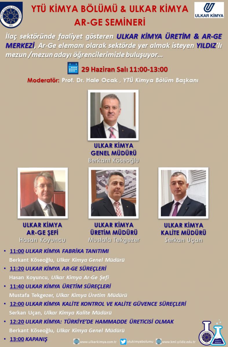 YTÜ KİMYA BÖLÜMÜ & ULKAR KİMYA AR-GE SEMİNERİ-ONLINE