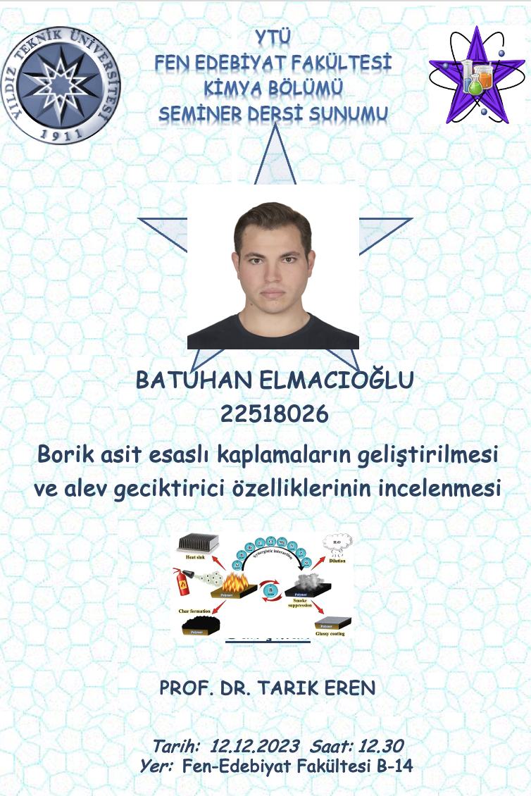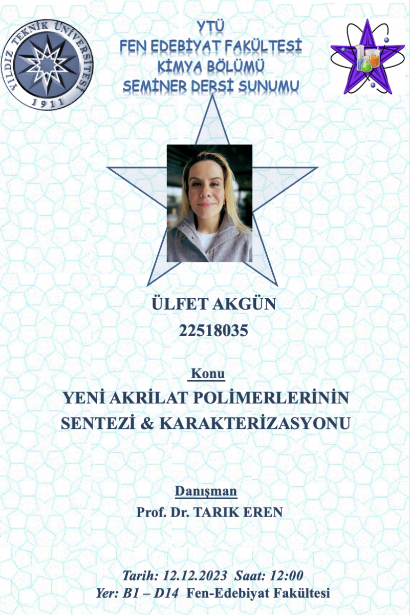12.12.2023 tarihinde, KIM5001 Seminer dersinde yapılacak olan sunumlara ait afişler ektedir.