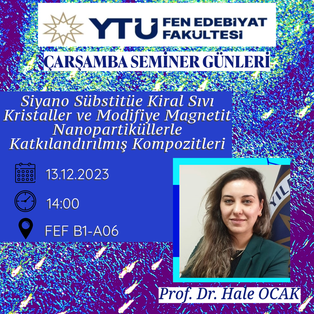Fen-Edebiyat Fakültesi Çarşamba Seminer Günleri'ne Prof. Dr. Hale OCAK hocamızın "Siyano Sübstitüe Kiral Sıvı Kristaller ve Modifiye Magnetit Nanopartiküllerle Katkılandırılmış Kompozitleri" isimli semineri ile devam ediyoruz. Yer: B1-A06 Tarih: 13.12.2023 Çarşamba Saat: 14.00