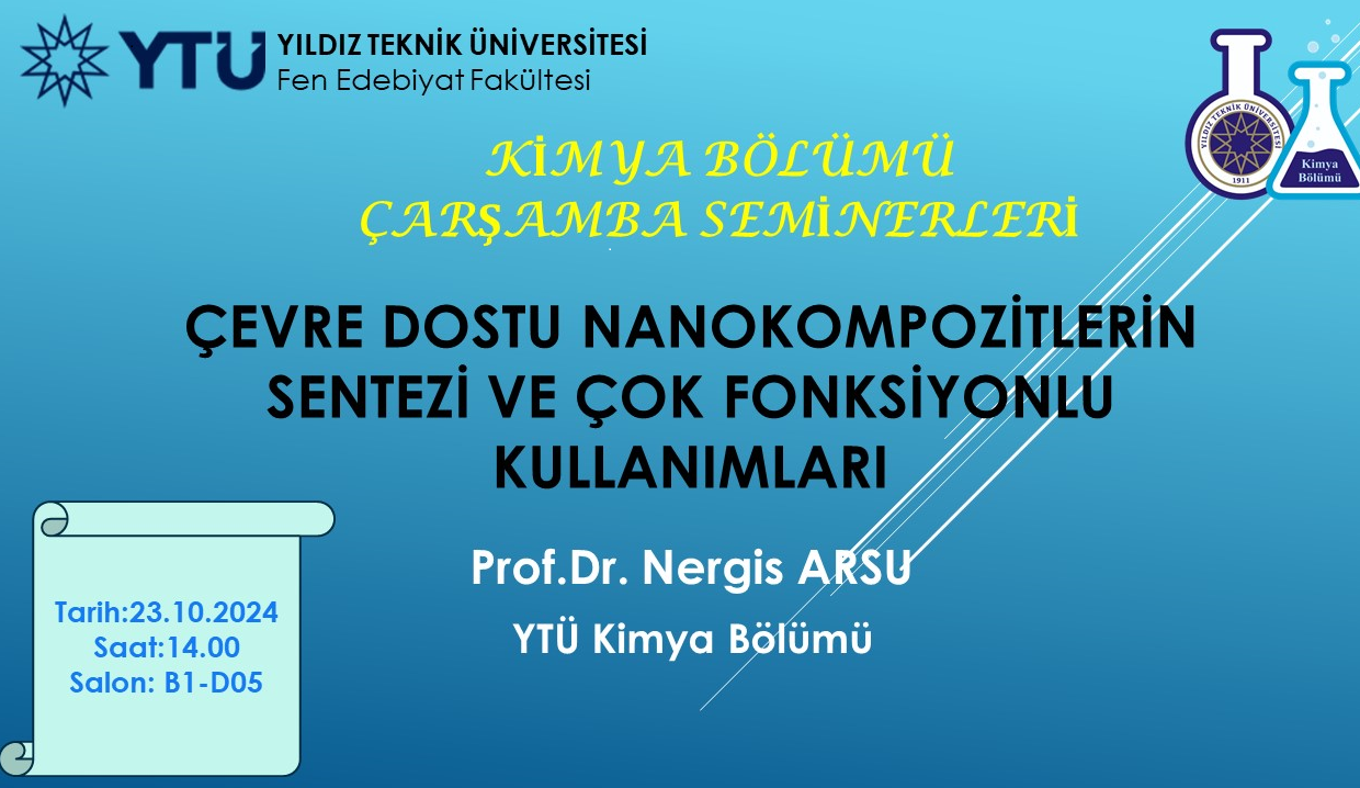 Çarşamba Seminer Günleri kapsamında 2024-2025 GÜZ Döneminin ilk seminerini 23 Ekim Çarşamba günü saat 14.00'da, Prof.Dr. Nergis ARSU hocamız yapacaktır.