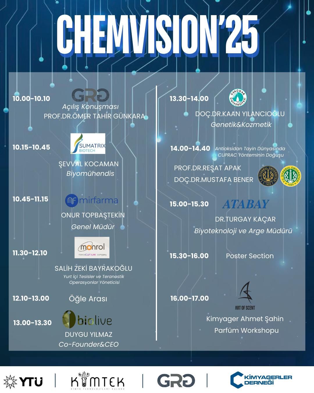 Yıldız Teknik Üniversitesi Kimya Teknolojileri Kulübü olarak CHEMVISION’25 etkinliğimizi, Kimyagerler Derneği ve GRG iş birliğiyle 14 Nisan 2025’te, Fen-Edebiyat Fakültesi Prof. Dr. Ahmet Karadeniz Konferans Salonu’nda gerçekleştiriyoruz!