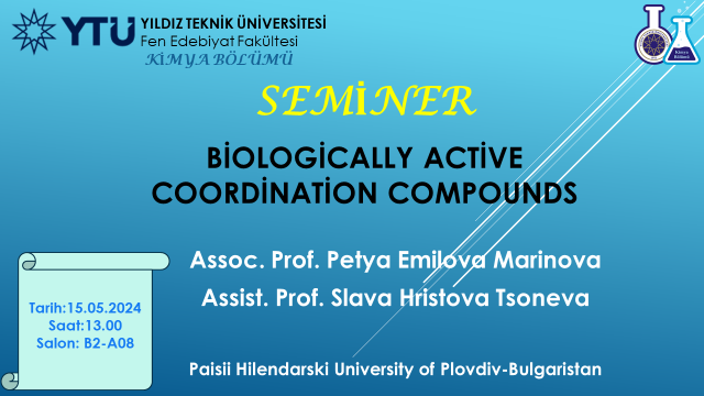Prof.Dr. Sevgi KOCAOBA Hocamızın misafiri olarak Erasmus kapsamında Paisii Hilendarski University of Plovdiv-Bulgaristan' dan gelen Assoc. Prof. Petya Emilova Marinova ve Assist. Prof. Slava Hristova Tsoneva 15 Mayıs Perşembe günü saat 13.00'da B2-A08 nolu derslikte seminer verecektir.
